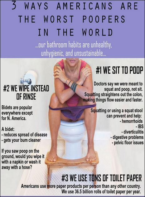 Now, before you frown your face up, think about it…. how do we feel when we squat if we are having a tummy ache? I know I am not the only one who has felt relief after squatting??? When I was pregnant I actually use to squat to poop, it was just more comfortable for me, I always wanted my legs and knees up higher then the toilet and I never had a problem going. I never thought there was an actual product out there for this though. Look at this picture to see how much more sense it makes to squat when pooping.